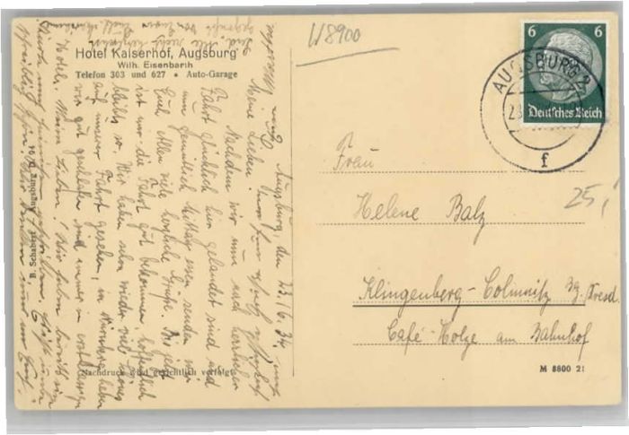 40641053 AUGSBURG CITY Hotel Kaiserhof postalisch gelaufen Alte Ansichtskarte Postkarte alte Postkarte Katcode 11110009761000