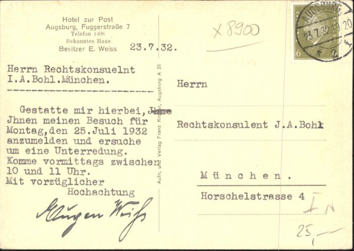 40819429 AUGSBURG CITY Hotel zur Post postalisch gelaufen Alte Ansichtskarte Postkarte alte Postkarte Katcode 11110009761000