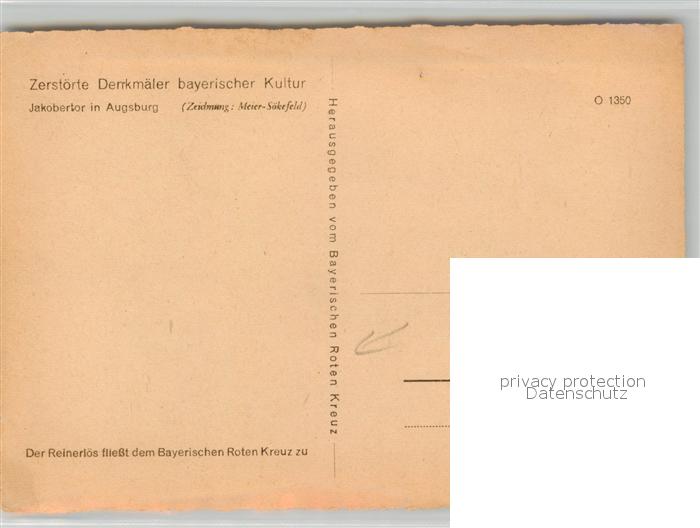 43497168 AUGSBURG CITY Jakobertor zerst?rte Denkm?ler der bayerischen Kultur Zeichnung Meier S?kefeld postalisch nicht gelaufen Erhaltung siehe scans [LiesaD40] Lies Katcode 11110009761000