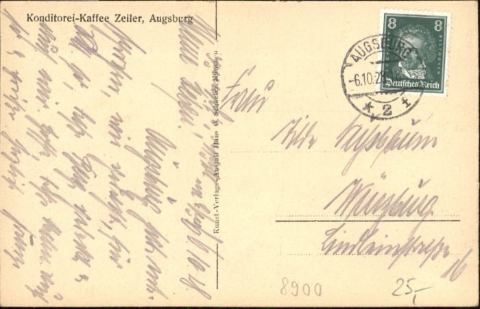 40819414 AUGSBURG CITY Konditorei Cafe Zeiler postalisch gelaufen Alte Ansichtskarte Postkarte alte Postkarte Katcode 11110009761000