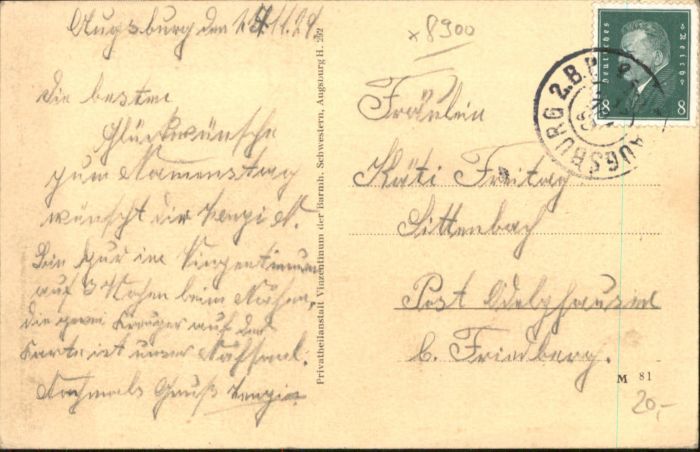 40819224 AUGSBURG CITY Privatheilanstalt Vinzentium postalisch gelaufen Alte Ansichtskarte Postkarte alte Postkarte Katcode 11110009761000