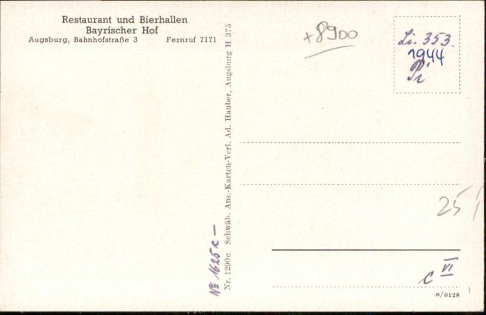 40824919 AUGSBURG CITY Restaurant Bierhalle Bayrischer Hof postalisch nicht gelaufen Alte Ansichtskarte Postkarte Katcode 11110009761000