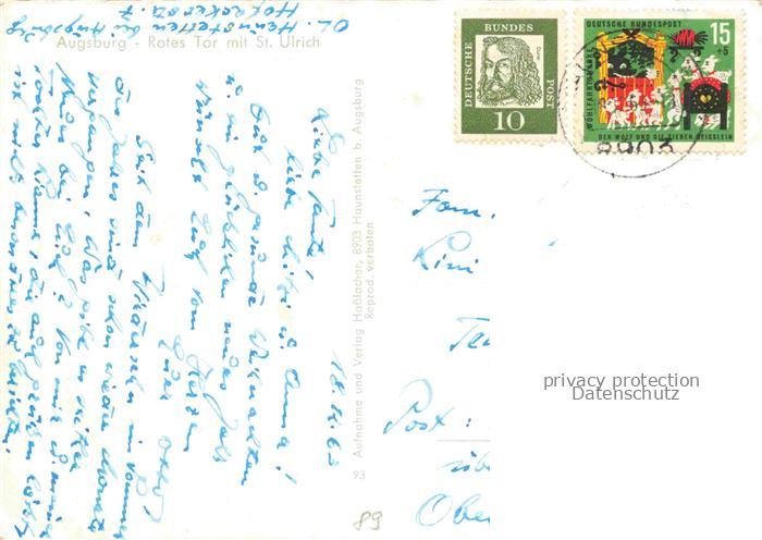 34145159 alte Postkarte AUGSBURG CITY Rotes Tor mit St Ulrich Kirche postalisch gelaufen Erhaltung siehe scans [WerneD78] KatCode: 11110009761000
