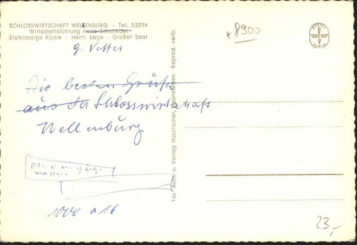 40819294 AUGSBURG CITY Schlosswirtschaft Wellenburg postalisch nicht gelaufen Alte Ansichtskarte Postkarte Katcode 11110009761000