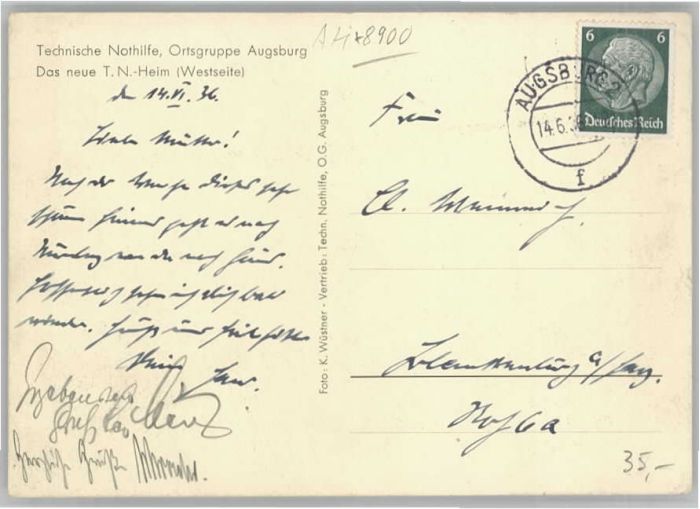 40655479 AUGSBURG CITY Technische Nothilfe Heim postalisch gelaufen Alte Ansichtskarte Postkarte alte Postkarte Katcode 11110009761000