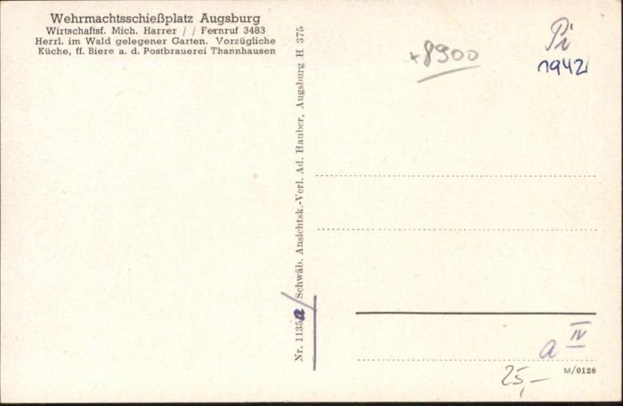 40819374 AUGSBURG CITY Wehrmachtsschiessplatz postalisch nicht gelaufen Alte Ansichtskarte Postkarte Katcode 11110009761000