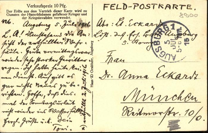 41043362 AUGSBURG CITY Wehrsaeule 1916 Feldpost postalisch gelaufen Alte Ansichtskarte Postkarte alte Postkarte Stef Katcode 11110009761000