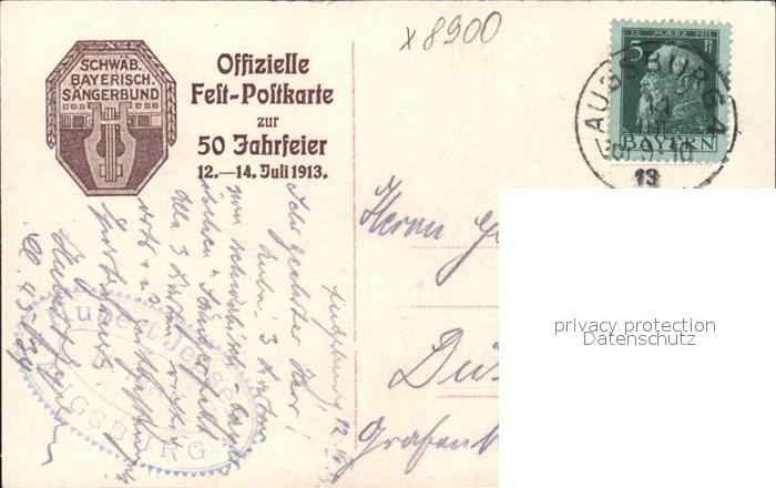 31850018 alte Postkarte Augsburg Festhalle im Stadtgarten Fassade Offzielle Festpostkarte 50 Jahrfeier postalisch gelaufen Erhaltung siehe scans KatCode: 11110009761000
