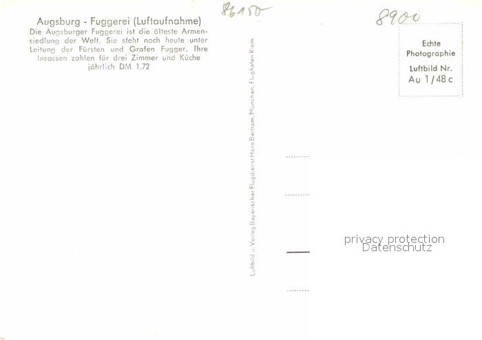 72822908 Augsburg Fliegeraufnahme Fuggerei postalisch nicht gelaufen Erhaltung siehe scans [AndreD76] KatCode: 11110009761000