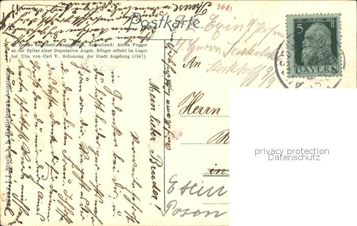 71861419 alte Postkarte Augsburg Freske am fuerstlichen Fuggerhaus postalisch gelaufen Erhaltung siehe scans KatCode: 11110009761000