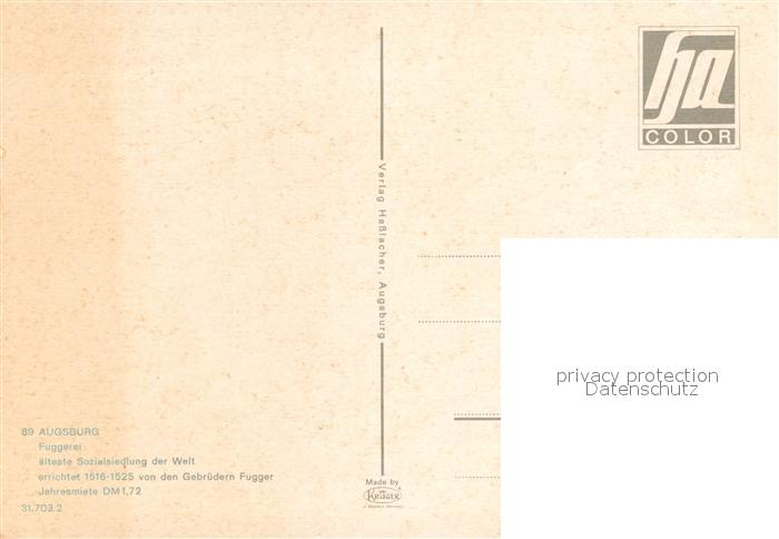 72991199 Augsburg Fuggerei aelteste Sozialsiedlung der Welt postalisch nicht gelaufen Erhaltung siehe scans [FriedD77] KatCode: 11110009761000