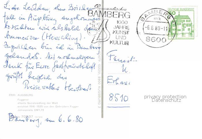 72771486 alte Postkarte Augsburg Fuggerei Brunnen postalisch gelaufen Erhaltung siehe scans [WerneD78] KatCode: 11110009761000