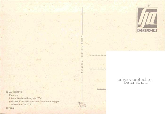 72664487 Augsburg Fuggerei Brunnen postalisch nicht gelaufen Erhaltung siehe scans [WerneD78] KatCode: 11110009761000