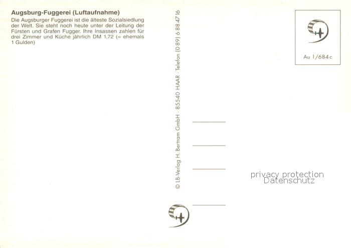 73668154 Augsburg Fuggerei Fliegeraufnahme postalisch nicht gelaufen Erhaltung siehe scans [FriedD77] KatCode: 11110009761000
