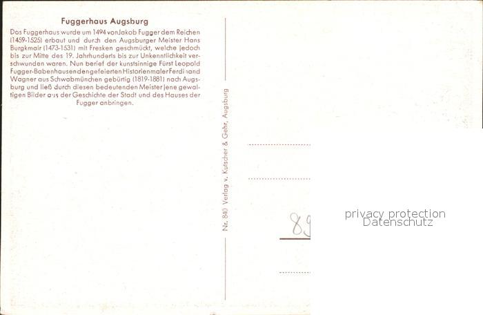 71861420 Augsburg Fuggerhaus Fresken Pferdekutsche Geschichte postalisch nicht gelaufen Erhaltung siehe scans KatCode: 11110009761000
