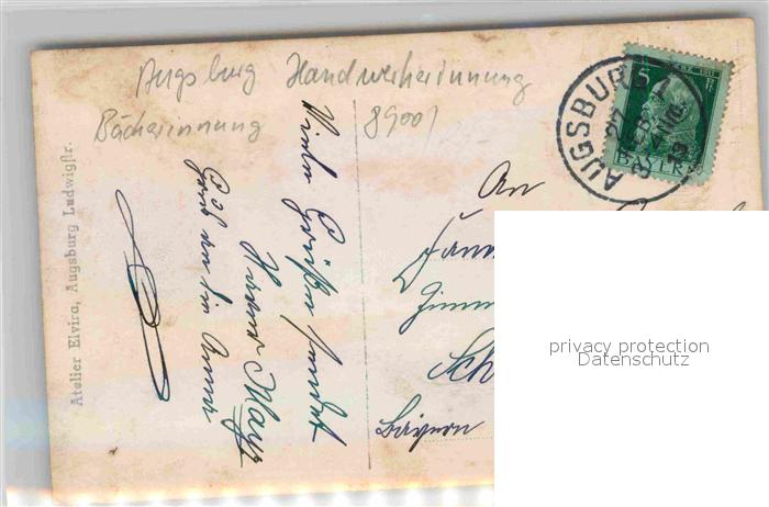 42722783 alte Postkarte Augsburg Handwerkerinnung Baeckerinnung postalisch gelaufen Erhaltung siehe scans [KathaD79] KatCode: 11110009761000