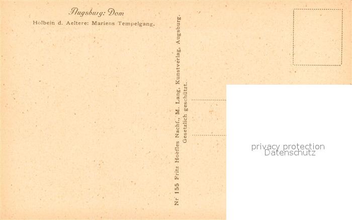 73623455 Augsburg Hans Holbein der aeltere Mariens Tempelgang Gemaelde im Dom Kunst postalisch nicht gelaufen Erhaltung siehe scans [FriedD77] KatCode: 11110009761000