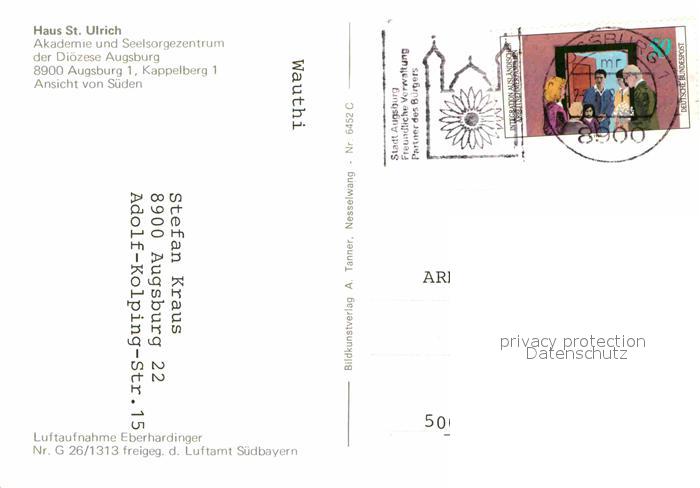 72724248 alte Postkarte Augsburg Haus St Ulrich Akademie und Seelsorgezentrum der Dioezese Augsburg Fliegeraufnahme postalisch gelaufen Erhaltung siehe scans [FriedD77] KatCode: 11110009761000