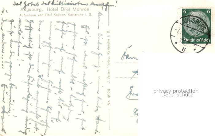 73801937 alte Postkarte Augsburg Hotel Drei Mohren postalisch gelaufen Erhaltung siehe scans [FriedD77] KatCode: 11110009761000