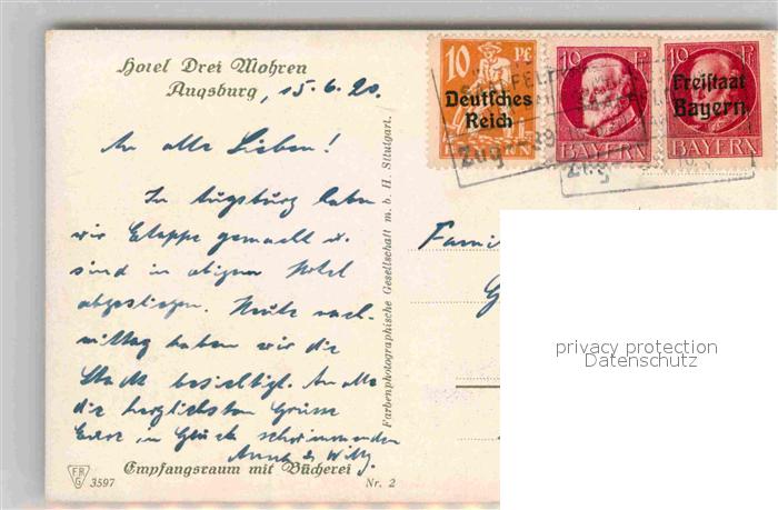 42681046 alte Postkarte Augsburg Hotel Drei Mohren postalisch gelaufen Erhaltung siehe scans [AndreD76] KatCode: 11110009761000
