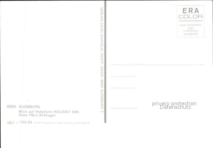 72037850 Augsburg Hotelturm Holiday Inn Fliegeraufnahme postalisch nicht gelaufen Erhaltung siehe scans Alte Ansichtskarte Postkarte Wern Katcode 11110009761000