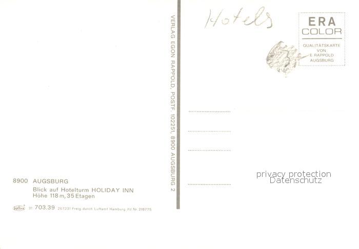 73165600 Augsburg Hotelturm Holiday Inn Fliegeraufnahme postalisch nicht gelaufen Erhaltung siehe scans [WerneD78] KatCode: 11110009761000