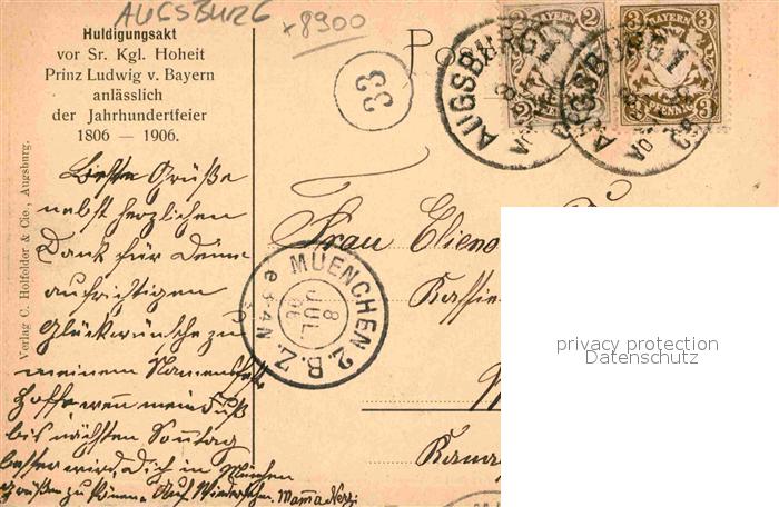 42730146 alte Postkarte Augsburg Huldigungsakt vor Sr. Kgl. Hoheit Prinz Ludwig v. Bayern postalisch gelaufen Erhaltung siehe scans [NatalD47] KatCode: 11110009761000