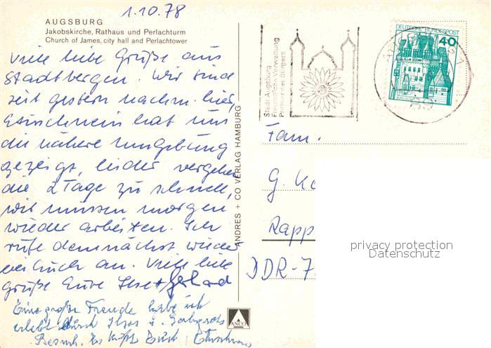 72706953 alte Postkarte Augsburg Jakobskirche Rathaus Perlachturm postalisch gelaufen Erhaltung siehe scans [AndreD76] KatCode: 11110009761000