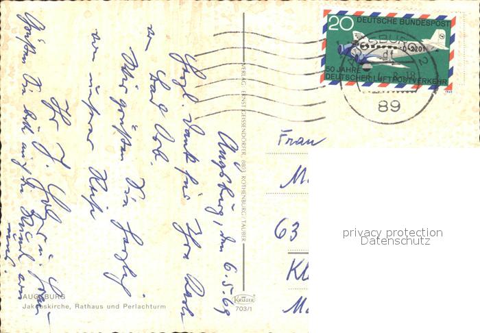 72135149 alte Postkarte Augsburg Jakobskirche Rathaus Perlachturm postalisch gelaufen Erhaltung siehe scans KatCode: 11110009761000