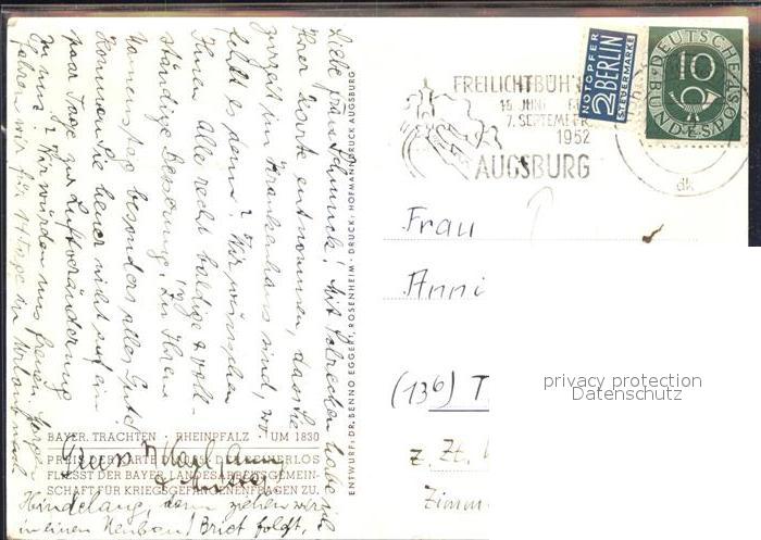 72143767 alte Postkarte Augsburg Kuenstlerkarte Bayerische Trachten postalisch gelaufen Erhaltung siehe scans KatCode: 11110009761000