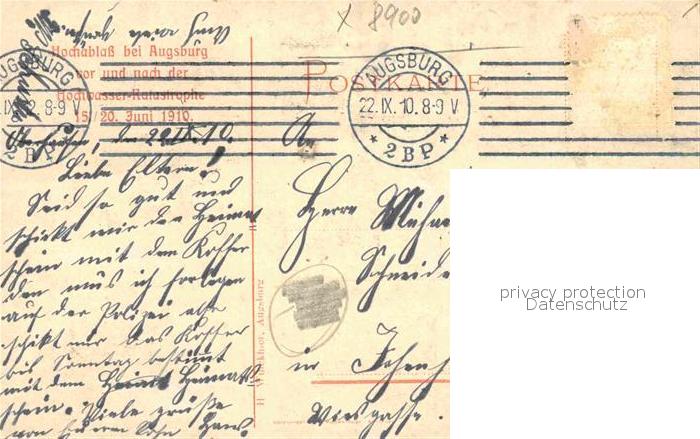 42736435 alte Postkarte Augsburg Linden-Platz Schleussenhaus Floss-Gasse postalisch gelaufen Erhaltung siehe scans [NatalD47] KatCode: 11110009761000