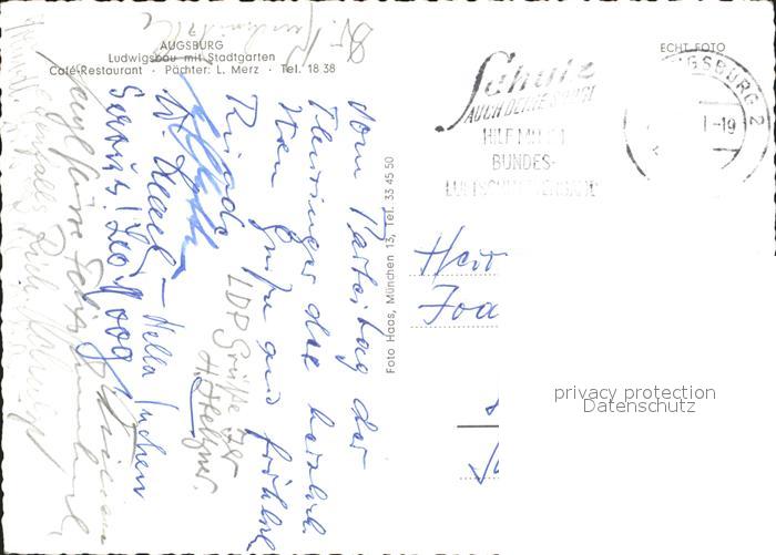 71986635 alte Postkarte Augsburg Ludwigsbau mit Stadtgarten Cafe Restaurant Springbrunnen postalisch gelaufen KatCode: 11110009761000
