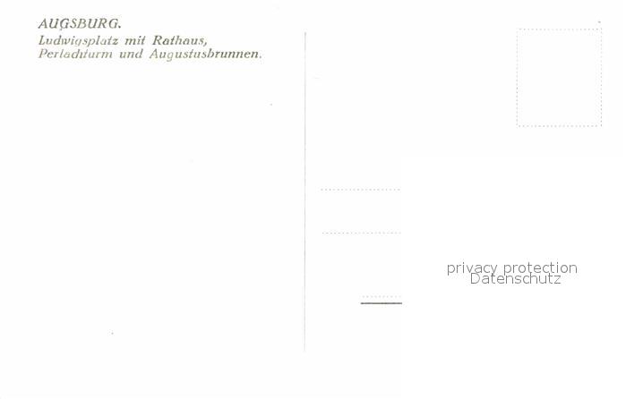 72826537 Augsburg Ludwigsplatz Rathaus Perlachturm Augustusbrunnen postalisch nicht gelaufen Erhaltung siehe scans [PaolaD17] KatCode: 11110009761000