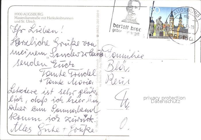 72369896 alte Postkarte Augsburg Maximilianstrasse Herkulesbrunnen St Ulrich Muenster postalisch gelaufen Erhaltung siehe scans KatCode: 11110009761000
