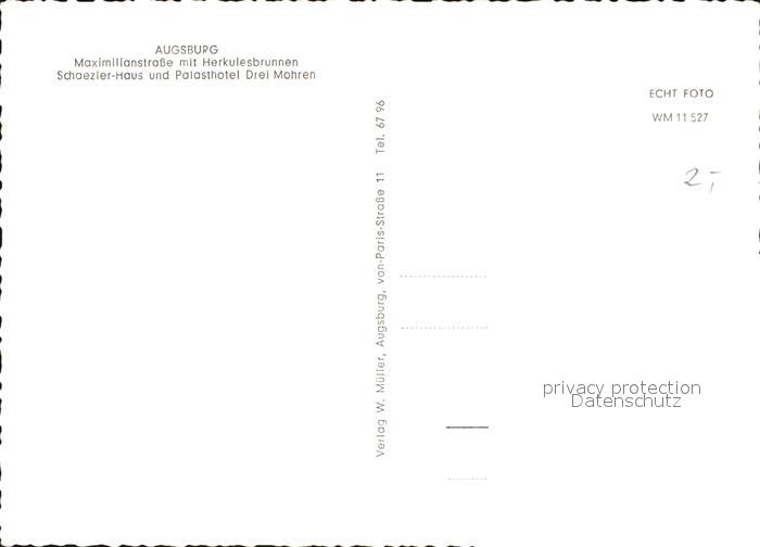 Augsburg Maximilianstrasse mit Herkulesbrunnen Schaezler-Haus Palasthotel Drei Mohren postalisch nicht gelaufen Erhaltung siehe scans
