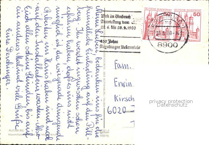 72108046 alte Postkarte Augsburg Maximilianstrasse mit Kirche postalisch gelaufen Erhaltung siehe scans KatCode: 11110009761000