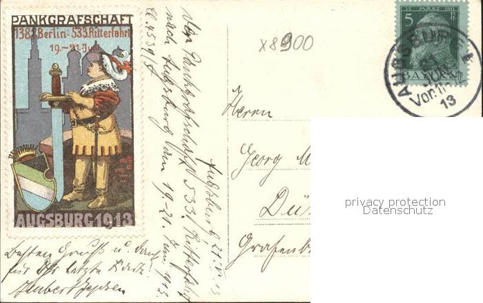 31840574 alte Postkarte Augsburg Menschenansammlung Aufmarsch Ritterfahrt postalisch gelaufen Erhaltung siehe scans KatCode: 11110009761000