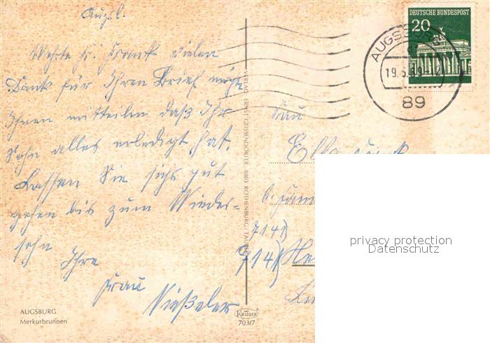 72814668 alte Postkarte Augsburg Merkurbrunnen postalisch gelaufen Erhaltung siehe scans [WerneD78] KatCode: 11110009761000