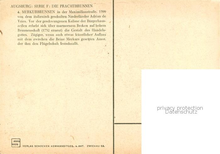 73771941 Augsburg Merkurbrunnen in der Maximilianstrasse postalisch nicht gelaufen Erhaltung siehe scans [WerneD78] KatCode: 11110009761000