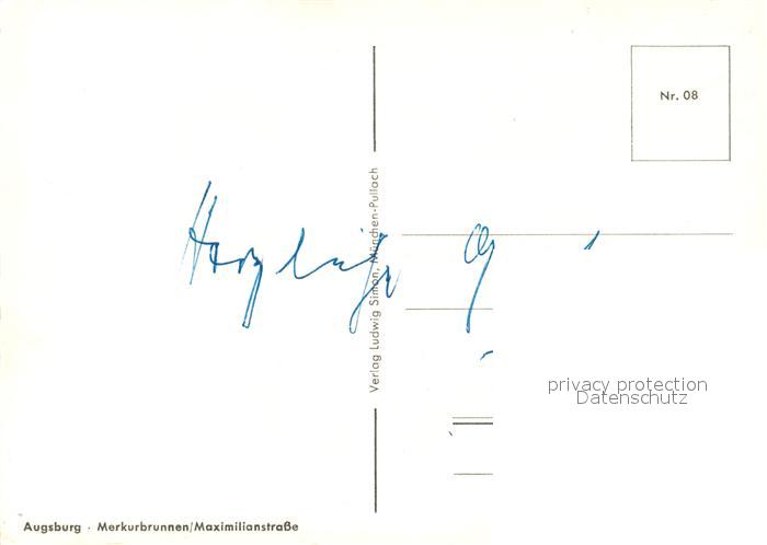 73334728 Augsburg Merkurbrunnen Maximilianstrasse Giebelhaeuser Innenstadt postalisch nicht gelaufen Erhaltung siehe scans [FriedD77] KatCode: 11110009761000