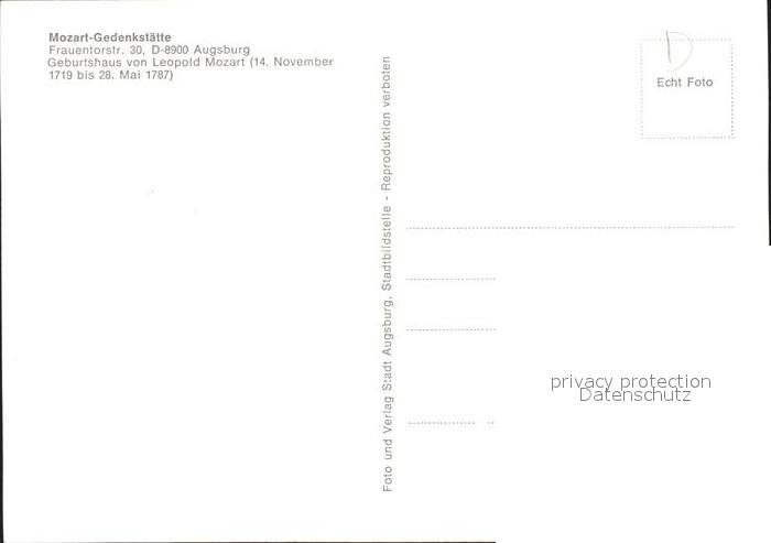 72040262 Augsburg Mozart Gedenkstaette Geburthaus Mozarts postalisch nicht gelaufen Erhaltung siehe scans KatCode: 11110009761000