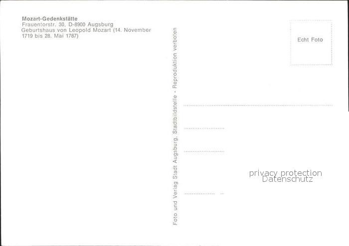 71998613 Augsburg Mozart Gedenkstaette postalisch nicht gelaufen Erhaltung siehe scans KatCode: 11110009761000