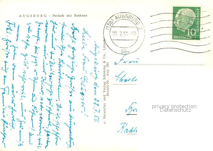 73050589 alte Postkarte Augsburg Perlach Rathaus postalisch gelaufen Erhaltung siehe scans [PaolaD17] KatCode: 11110009761000