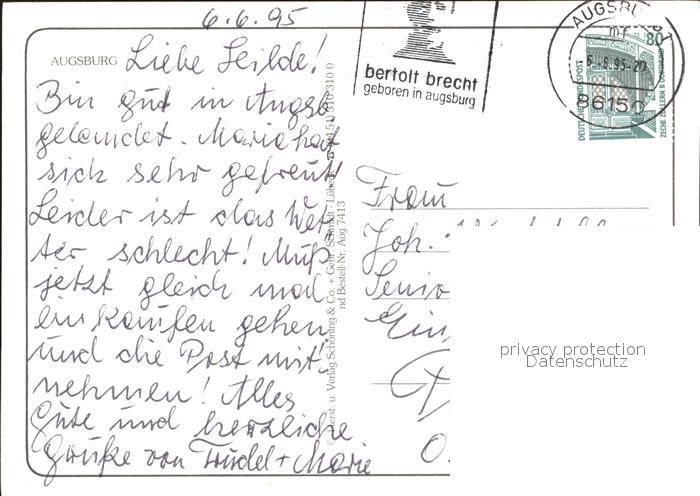 72369900 alte Postkarte Augsburg Perlachturm Rathaus Kirche Brunnen Weberhaus Theater Hochhaus postalisch gelaufen Erhaltung siehe scans KatCode: 11110009761000