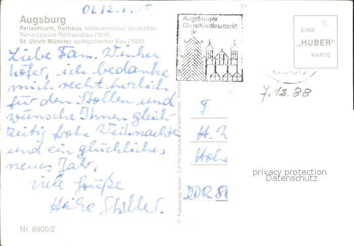 72369895 alte Postkarte Augsburg Perlachturm Rathaus Renaissance St Ulrich Muenster Gotik Nachtaufnahme postalisch gelaufen Erhaltung siehe scans KatCode: 11110009761000