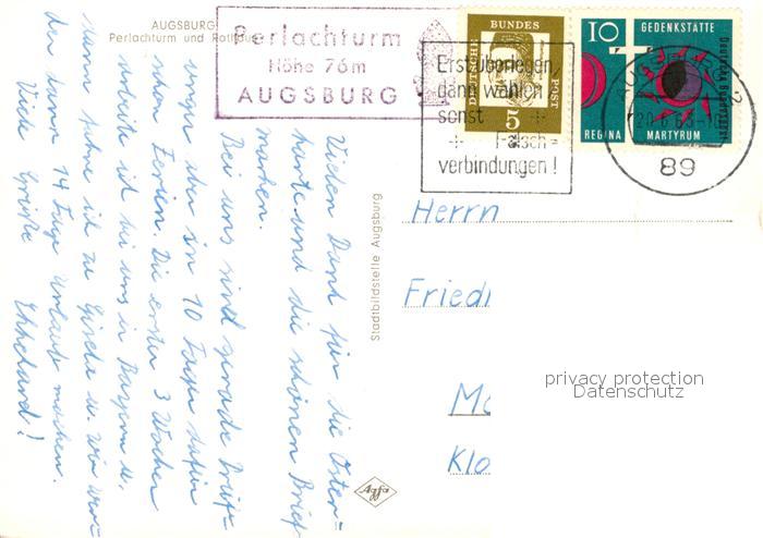 73135074 alte Postkarte Augsburg Perlachturm und Rathaus postalisch gelaufen Erhaltung siehe scans [FriedD77] KatCode: 11110009761000
