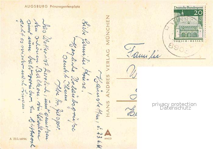 72663305 alte Postkarte Augsburg Prinzenregentplatz postalisch gelaufen Erhaltung siehe scans [AndreD76] KatCode: 11110009761000