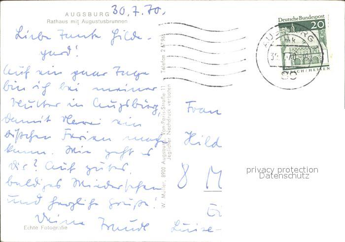 72077223 alte Postkarte Augsburg Rathaus Augustusbrunnen postalisch gelaufen Erhaltung siehe scans KatCode: 11110009761000