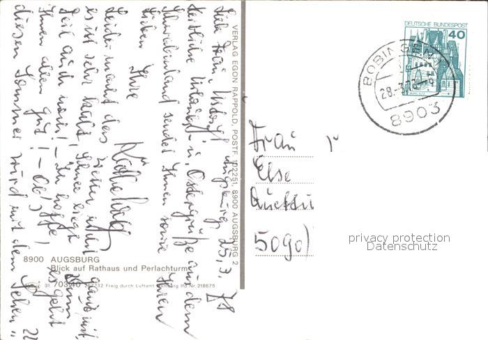 72419616 alte Postkarte Augsburg Rathaus Perlachturm Fliegeraufnahme postalisch gelaufen Erhaltung siehe scans KatCode: 11110009761000