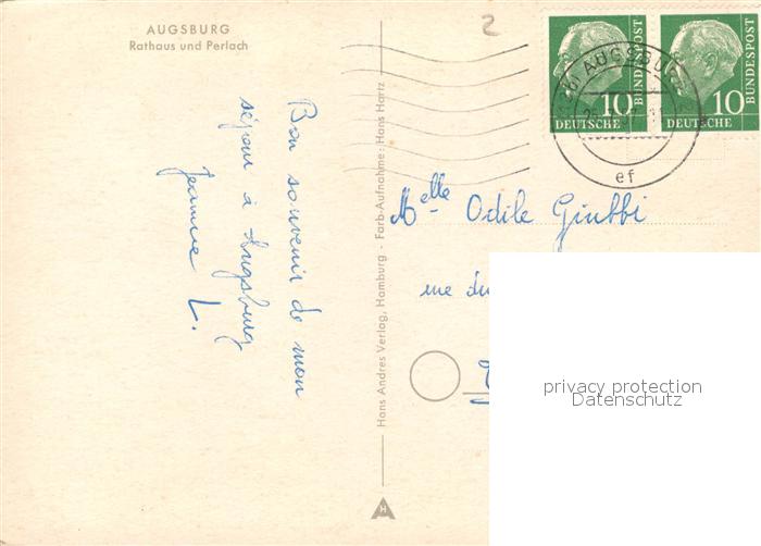 73365082 alte Postkarte Augsburg Rathaus und Perlach postalisch gelaufen Erhaltung siehe scans [WerneD78] KatCode: 11110009761000